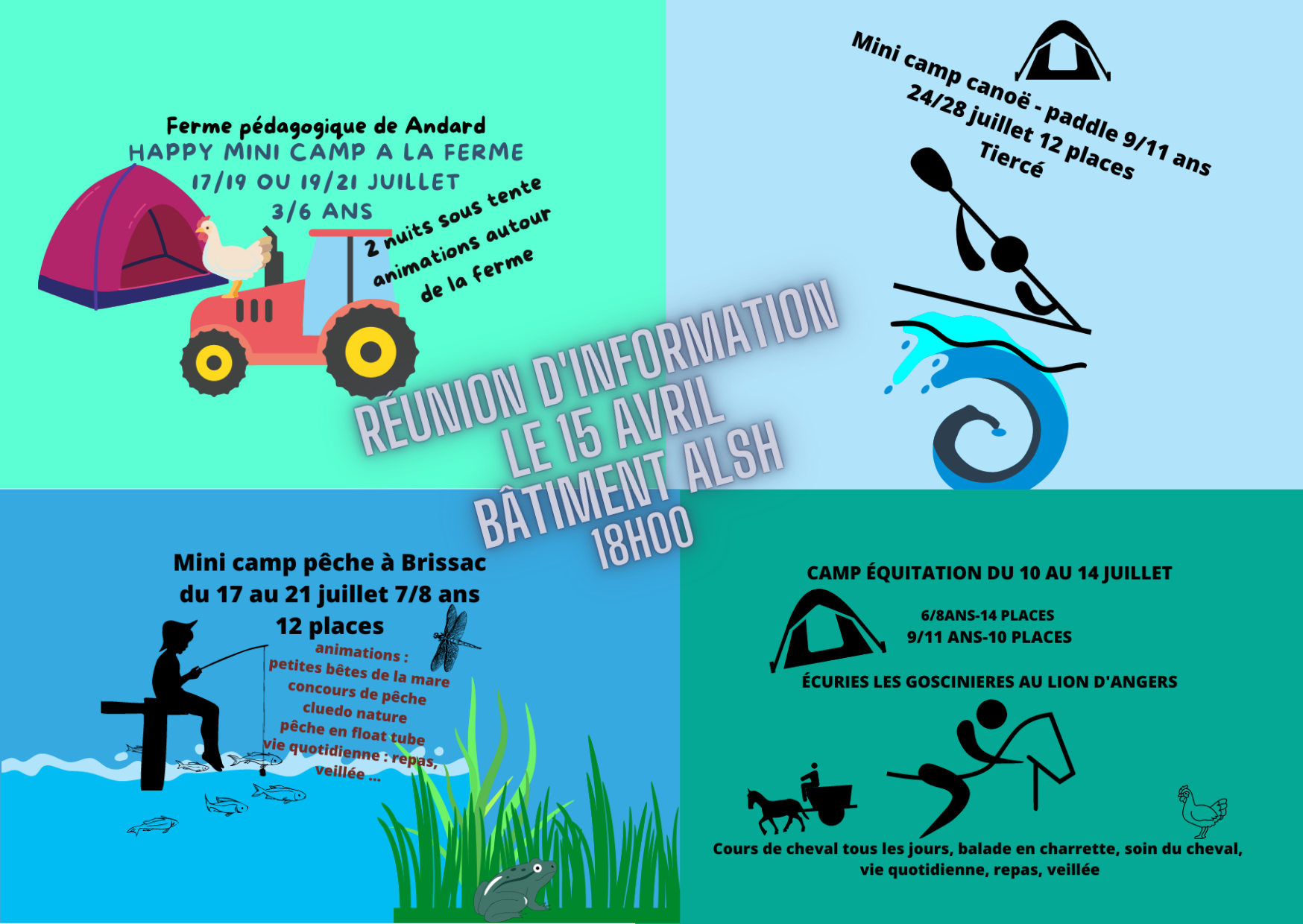 une information sur trousseau, heure départ/retour sera fournie pour chaque camp et à chaque inscrit.